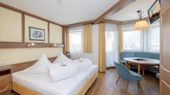 Voor de echte Tiroler familiesfeer ben je in Hotel Strolz aan het juiste adres. Met de rustige ligging aan een mooie bosrand, op loopafstand van het centrum van Mayrhofen, ga je hier een heerlijke vakantie tegemoet. Het vriendelijke personeel vindt het belangrijk om een goede service te leveren en dat is te merken. Het begint ’s ochtends al bij het ontbijt waar een uitstekende koffie wordt geschonken en je het verse huisgebakken brood geserveerd krijgt. Voor ’s middags op het zonneterras of bij het diner kun je een mooie fles kiezen uit de eigen wijnkelder van het hotel. Ook in de lobby zit je goed met een drankje in de hand, de open haard staat al aan wanneer je terugkomt van een sportieve dag op de pistes. Om je nog even op te frissen voor het diner neem je misschien dan nog even een duik in het zwembad en snuif je de heerlijke eucalyptusgeuren op van het stoombad. Wat een zaligheid, je komt weer helemaal bij. Tip: voor een voordelige optie kun je ook een kamer reserveren in de dependance van Hotel Strolz, voor een lage prijs geniet je dan nog steeds alle faciliteiten van het hotel.