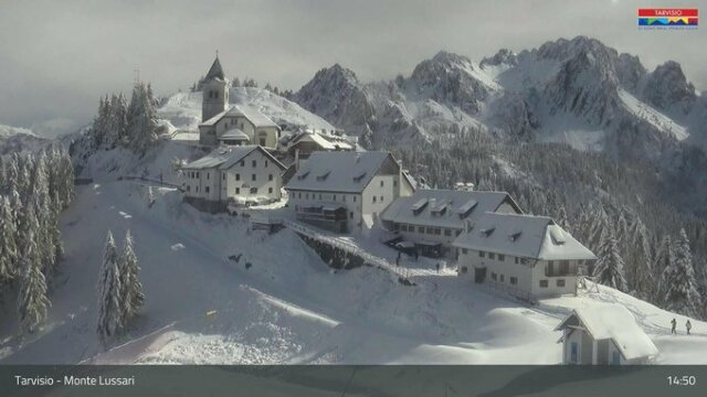 Fotogeniek Monte Lussari in de Venetiaanse Alpen. Er viel hier ruim 40cm sneeuw. @Webcam