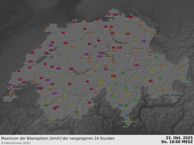 Gisteren zorgde Storm Benjamin voor een forse weeromslag in de Alpen. In eerste instantie viel er veel regen, maar met het binnenstromen van de polaire lucht zakte de sneeuwgrens zoals verwacht tot 1500 m en uiteindelijk lager. Dit ging echter niet zonder slag of stoot. Op Pilatus berg in Zwitserland liepen de windstoten op tot 148 km/u, op Säntis tot 149 km/u. Feldberg in het Zwarte Woud geraakte nog wat hoger met een piek van 157 km/u. Straf! Vandaag waait het nog steeds hard, maar de felste rukwinden gaan er stilaan wel uit.