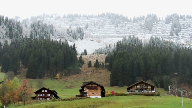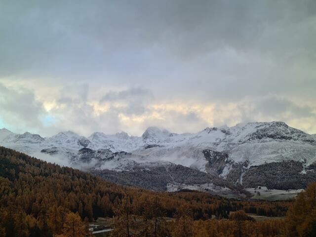 Toppen in de winter, valleien in de herfst bij Pontresina. @MeteoSuisse