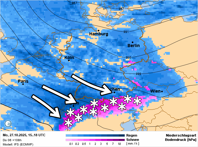Duitse term voor de stuwing van neerslagfronten uit het noorden of noordwesten tegen de Alpen aan. Goed voor urenlange zo niet dagenlange sneeuwval.