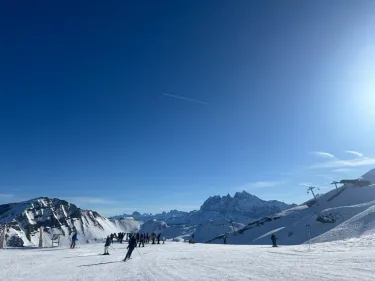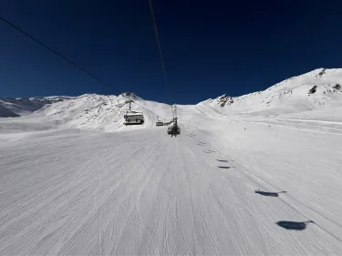 Het is druk op de terrassen in de Alpen. Onder dit soort voorjaarsachtige omstandigheden geen slechte plek voor een drankje, kop koffie of middag lunch. Op de weerkaart ligt een machtig hoog net ten oosten van de Alpen. Deze positie zorgt dat de Afrikaanse warmtepomp volledig open staat. Bludenz 19,3 C, Salzburg 18,5, Innsbruck 17,8 C en zo kan ik nog wel even warm doorgaan. Als het zwaartepunt van hogedruk trouwens net ten westen van de Alpen had gelegen, beleefden we nu een ijskoude variant. Leuke anekdote voor hoe het ook totaal anders had kunnen uitpakken, maar dit even terzijde. Het weerbeeld in de Alpen vandaag is een kopie van gisteren. De zon schijnt in de droge luchtmassa ongehinderd op de pistes met alleen rond het Alpenvorland kans op wat ondiepe hochnebelvelden. Later vormen zich in de buurt van de Ligurische Alpen wat onschuldige stau wolken, maar daar is dan verder ook alles mee gezegd. In de Oostelijke Alpen staat er amper wind. In de Franse Alpen staat er iets meer wind, maar hooguit zwak tot matig uit meest zuidwestelijke richting. De vorstgrens ligt met 2700 tot 3000 meter nog steeds abnormaal hoog voor de tijd van het jaar.
