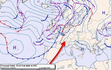 Morgen verschijnt er in de Franse Alpen geleidelijk wat meer bewolking aan de westelijke horizon. Een vrij ondiep lagedrukgebied trekt dan via het Verenigd Koninkrijk naar de Centrale Noordzee. Een hieraan gekoppeld zwak koufront bereikt in de loop van de middag het Westelijke Alpengebied. Dit gaat vanuit het zuidwesten gepaard met wat meer bewolking. Hieruit valt later op de dag in de Franse Alpen, westen van Zwitserland, Aosta en Piëmonte lokaal wat buiige neerslag. De sneeuwgrens ligt daarbij ergens tussen de 1500 en 1900 meter. Ik verwacht overigens niet al teveel neerslag. Daarvoor is het koufront domweg te zwak.