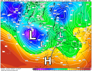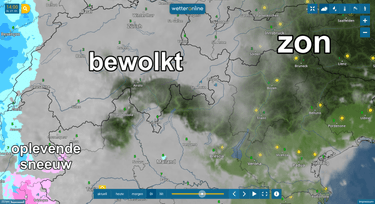 Morgen begint overal droog. In de Oostelijke Alpen is het volledig helder en koud. Een prachtige ochtend dus. In de Westelijke Alpen komen al meteen meer middelhoge en hoge wolkenvelden voor, die snel toenemen in aantal. Na de middag zal de eerste neerslag dan ook arriveren. Met een forse westenwind wordt er snel zachtere lucht aangevoerd waardoor de sneeuwgrens in de voor-Alpen al snel stijgt tot 1600-1800 m. Inner-Alpien blijft de sneeuwgrens enkele honderden meters lager hangen (de koude lucht blijft hier plakken). In eerste instantie focust de neerslag zich enkel op de Zuidelijke Franse Alpen. 's Avonds en tijdens de nacht op woensdag breidt de neerslag dan uit langs de westkant naar het noorden, en grijpt de neerslag ook over naar de westelijke binnenboog. Eigenlijk verloopt de dinsdag skidag dus nog wel droog. In de Oostelijke Alpen blijft het ook na de middag zonnig. Hier wordt dinsdag dus echt een prima dag, met een vorstgrens stijgend tot 2200 m aan de noordkant (nieuwe föhn-fase) en 1400 m aan de zuidkant.
