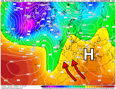 Het is vandaag opnieuw hogedruk die over de Alpen regeert. Resultaat? Zonnige omstandigheden bij de start van de week. Met een diepe zuidelijke luchtstroming maakt de wat koelere lucht snel plaats voor zachtere lucht waardoor de temperaturen aan een nieuwe opmars beginnen. Komende dagen blijven hogedrukgebieden over Centraal-Europa heersen. Het doet mij sterk denken aan vorig jaar, toen er ook bij ons tijdens de eerste 20 dagen van de maand geen drup viel. Een krachtige hogedrukblokkade die de lente een vroege boost geeft.