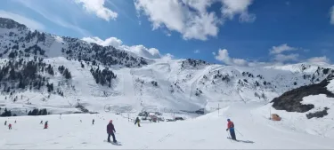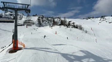 Vrijdag beloofd een ouderwetse knaldag te gaan worden! De zon schijnt onder een rug van hoge luchtdruk uitbundig. Daarbij staat er ook niet al teveel wind. Ideale omstandigheden om vroeg op pad te gaan. Met temperaturen van tussen de 0 en +4 graden C op 2000 meter is het prima uit te houden op de pistes. Later op de dag verschijnt er vanuit het noordwesten langzaam wat meer hoge bewolking (cirrus stratus) aan de horizon. Deze kondigt een naderende weersverslechtering aan. Of verbetering, het is maar hoe je het bekijkt, als je van sneeuw houdt!