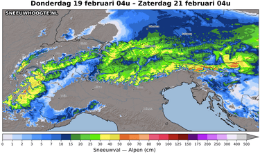 Langs de zuidkant en in het westen verloopt zaterdag droog met veel ruimte voor de zon. De toenemende invloed van hogedruk boven het zuidwesten van Europa heeft hier duidelijk een gunstige invloed. De oostelijke noordkant (oosten van Zwitserland en Oostenrijk) ligt wellicht de hele dag onder de wolken van een warmtefront. Daarbij valt ook sneeuw, met een sneeuwgrens van ca. 1000-1200 m. Zondag neemt de luchtdruk verder toe waardoor het zonnige weer zich uitbreidt. Enkel de Oostelijke Alpen (Salzburgerland) vertoeven ook dan wellicht nog onder de wolken met kans op sneeuw/regen. De sneeuwgrens zou kunnen stijgen tot 1400 m. Elders wordt het ook markant zachter met een vorstgrens stijgend tot 2500 m. Het zachtere regime lijkt begin volgende week aan te houden. Het westen en de zuidkant krijgen vaak zonnig weer. In het oosten blijft de kans op bewolking en wat sneeuw/regen groter. Tijdens het tweede deel van volgende week zouden Atlantische neerslagzones hun weg naar de Alpen weer meer kunnen vinden met koeler weer (onder voorbehoud). Michael volgt het morgen verder op voor jullie.