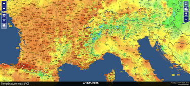 Afgelopen dagen werd er met een diepe zuidelijke luchtstroming zeer zachte lucht aangevoerd naar de Alpen, wat zorgde voor een bijna lente-achtig gevoel. Na de wat meer grijzere weken en de kleine sneeuwval van ondertussen al bijna 2 weken geleden, leken de bergen uit een winterslaap te ontwaken. Hier en daar verschijnen er zelfs terug blaadjes aan de bomen, of wordt het gras weer wat groener. In het noorden van Zwitserland werd het 24°C gisteren, Oberstdorf haalde bijna 21°C, in de vallei van Grenoble werd het 25°C, maar het meest uitzonderlijk was het zuiden van Frankrijk waar het net ten noorden van de Pyreneeën 29°C werd! Dat is natuurlijk alleen mogelijk met aanvoer van zachte lucht en föhn in dit jaargetij. Gelukkig is er een echte weersverandering op komst. Eindelijk!