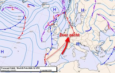 Een hogedrukgebied boven de Randstaten heeft vandaag een uitloper richting de Alpen en de Balkan. Als tegenhanger zien we een zuid - noord georiënteerd koufront van Portugal richting Ierland. Dit koufront blijft vanwege Europese hogedruk invloed stationair, waardoor het de Alpen niet kan bereiken. Vanwege deze luchtdrukverdeling staat er op hoogte een krachtige zuidelijke wind. Het zal je niet verbazen dat het daardoor voorjaarsachtig aanvoelt in de Alpen. Niet vreemd, want de luchtsoort is helemaal afkomstig uit Algerije! In het Franse Saint-Gladie, net ten noorden van de Atlantische Pyreneeën, werd zelfs een recordwarme 29,6 graden gemeten! Op een haar na tropisch in februari. Het moet toch niet gekker worden. Natuurlijk hielp de föhn daarbij een handje mee, maar het blijft een thermisch hoogstandje. Dat zien we duidelijk aan de vorstgrens terug. Deze ligt in het westen ergens rond de 3100 à 3300 meter. Met de overvloedig schijnende zon een lenteachtige dag dus. Dat leidt natuurlijk tot drukte op de hoger gelegen pistes. Maar het voorjaarszonnetje maakt veel goed. Alleen rond de Piëmonte komen lokaal wat meer wolkenvelden voor. Maar verder is er geen vuiltje aan de lucht.