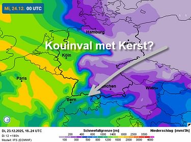 Update 07.36. De laatste run laat toch wel wat sneeuwsignalen zien rond de Kerst. Voor de noordzijde vrij licht, maar aan de zuidkant gevoed vanuit Mediterrane invloed misschien wat sterker. Alles voorlopig even onder voorbehoud. De modellen zijn erg springerig!