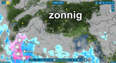 Sneeuw in het zuidwesten van de Alpen. Elders blijft het weer droog met zon en wolkenvelden. @Wetteronline
