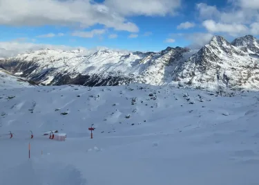 Zondag een maandag vallen er in het noordwesten van Italië inclusief de zuidelijke Seealpen aanhoudend talrijke sneeuwbuien. De Dauphiné en Vanoise pakken lokaal ook een sneeuwbui mee. Het zwaartepunt ligt echter zoals ik al eerder zei vanwege de zuidoostelijke aanvoer meer op de Italiaanse kant. De sneeuwgrens ligt met ongeveer 1100 à 1400 meter op een aanvaardbaar niveau. Voor de Oostenrijkse en Zwitserse Noordalpen blijft het onverminderd droog met vrij veel zon. De aanvoer zit muurvast in de continentale zuidoost en later oosthoek, met de aanvoer van zeer droge lucht. Zolang er niets verandert in dit patroon blijft de sneeuw ook achterwege. Frustrerend maar het is niet anders. De zon maakt veel goed gelukkig. Daarbij maakt het kwik vanaf zondag vanuit het oosten een koude sprong naar beneden. De pistedienst met hun sneeuwkanonnen weten er wel raad mee.