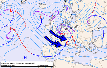 De weerkaarten worden grondig door elkaar gegooid dezer dagen. Vandaag is de beurt aan storm Goretti die vanmiddag met de kern boven het zuiden van Nederland ligt. De Alpen liggen wat verder weg, maar krijgen zeker en vast ook met het windveld te maken. De opstuwing van steeds koudere lucht zorgt wel voor stevige sneeuwbuien, vooral in het westen. Morgen en zondag schuift het lagedrukgebied verder door naar het oosten en stroomt er weer polaire lucht naar het Alpenruim. Dit leidt in eerste instantie tot een Nordstau met sneeuw voor de hele noordkant. Volgende week komen de Alpen dan meer in een zuidwestelijke regime terecht met droger weer en hogere temperaturen.