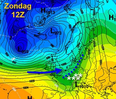 Komend weekend heeft 2 gezichten. Zaterdag is het nog erg zacht. De verder oplevende zuidwestelijke wind veroorzaakt rond de Italiaanse Alpenboog richting Tessin voor stau bewolking. Hieruit valt af en toe wat lichte regen. Boven ongeveer 2500 meter is dan ook wat sneeuwval mogelijk. Zondag staat in het teken van een doorkomend koufront. Er valt in eerste instantie regen, maar de sneeuwgrens daalt met het instromen van flink koudere lucht vanuit het westen al vrij snel richting de 1600 meter grens. Oostenrijk is dan zondagavond aan de beurt. Hier gaat het ook regenen en sneeuwen. Het eerst in de Arlberg. Later ook verder oostwaarts, maar de activiteit van het front lijkt dan wel wat te gaan verpieteren.