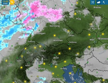 Het is pas medio november, maar in de Alpen heeft de winter al kneiter hard toegeslagen. Het kwik kelderde afgelopen nacht op uitgebreide schaal tot diep onder het vriespunt. Strenge, tot lokaal zelfs zeer strenge vorst op de thermometers. Zeker in de beschut gelegen dalen op hoogte kan het onder deze omstandigheden genadeloos koud zijn. Gelukkig komt de zon vandaag weer tevoorschijn. Niet zo prominent als gisteren, want er schuiven frequent toch wel wat onschuldige wolkenvelden over. Rond de Schweizer Voralpen en Ligurische Alpenboog verschijnt in de middag wat dikkere bewolking aan de hemel. Hieruit kan later in de middag plaatselijk een lichte sneeuwbui vallen. Voor de rest blijft het in het gehele aandachtsgebied verder overwegend droog.