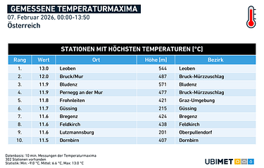 In Oostenrijk verwacht ik de meeste kans op zon rond de Bayerische Alpen richting de Hohe Tauern. Aan de zuidzijde wordt de lucht wat vochtiger, met daardoor de vorming van meer actievere wolkenvelden. Ik verwacht hier overigens geen neerslag, met uitzondering van de zuidoostelijke Alpenregio. Daar blijft een lichte regen of sneeuwbui mogelijk.
