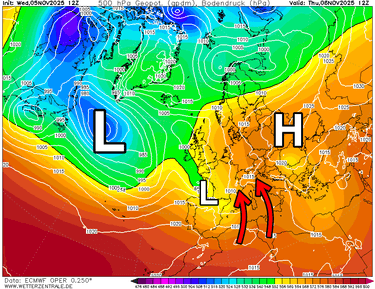 Ik verwacht tijdens het weekend weinig verandering. De luchtdruk wordt wat meer vlak (geen dominantie van hoge- of lagedruk), maar algemeen verandert het weerbeeld hierdoor niet veel. In de lagere gebieden zal de hochnebel daardoor wat hardnekkiger blijven, tot pakweg 1600 m, maar daarboven en inner-Alpien schijnt de zon volop. De vorstgrens zakt verder tot 2000-2400 m. Tijdens de heldere nachten kan het wel fors kan afkoelen waardoor de kunstsneeuwproductie volop zal kunnen aangaan. Dat is toch al een hele stap! Voor zover, een fijne dag! :)