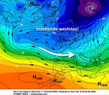 De weerkaarten zijn drastisch aan het veranderen. Het geblokkeerde patroon, met hogedruk boven Noord en Noordoost-Europa, maakt plaats voor een meer zonaal westelijk patroon. Een omvangrijk lagedrukgebied boven de Atlantische Oceaan verplaatst zich meer richting het Verenigd Koninkrijk en Noordzeegebied. Aan de zuidflank van dit systeem komt een krachtige westelijke stroming op gang met de aanvoer van zeer vochtige maritieme lucht. Dit levert vanaf dinsdag voor een markante weersomslag op. Dinsdagochtend begint het als eerste in de zuidelijke Franse Alpen te regenen en sneeuwen. Deze neerslagzone breidt zich vervolgens snel verder over de noordelijke Franse Alpen en Zwitserse Alpen uit. De sneeuwgrens ligt aanvankelijk ergens rond de 1500 meter, maar klimt later met het instromen van wat zachtere lucht tot ergens richting de 1800 meter. Dit is dus wel een aandachtspuntje. Ook voor Oostenrijk op woensdag, want met een tijdelijk stijgende sneeuwgrens richting de 1800 à 1900 meter zijn de lager gelegen dorpen kwetsbaar voor enige regen. De laatste weerkaarten geven helaas een iets warmere impuls op hoogte. Zoals ik het nu kan inschatten trekt de meeste actieve neerslag ten noorden van de Dolomieten langs.