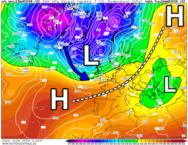 Een as van hogedruk ligt vandaag precies over de Alpen en verbindt het Azorenhoog met een Russisch hogedrukgebied. De nabijheid van hogedruk zorgt voor rustig, droog en zonnig weer. Een uitzakkend lagedrukgebied vanaf het noordwesten en een vormend Italiaans lagedrukgebied zorgt vanaf morgen voor een markante omslag naar wisselvallig en koud weer. Er komt mogelijk veel sneeuw aan!