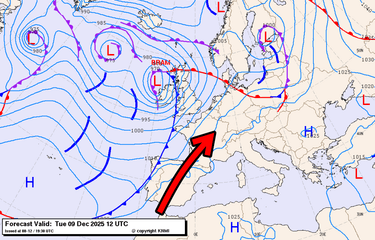 Een uitstulping van hogedruk vanuit Tunesië zorgt vandaag voor rustig en zonnig weer. Tegelijk blijft de aangevoerde lucht uit het zuidwesten komen (aan de westkant van storm Bram) en is deze subtropisch zacht. Komende dagen blijven de Alpen onder de invloed liggen van hogedrukimpulsen boven Centraal-Europa. Neerslag (van betekenis) wordt daardoor niet meteen verwacht.