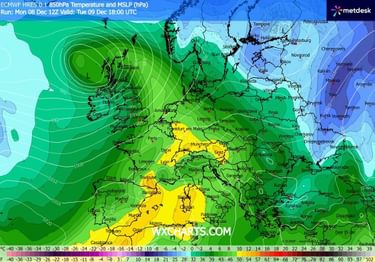 Tot en met het weekend zie ik voorlopig weinig tot geen verandering in het weerbeeld over de Alpen. Op donderdag hangen er dan in het westen en noordwesten wel wat meer middelhoge wolkenvelden, vaak kan de zon daar nog wel gedeeltelijk diffuus doorheen schijnen. Vrijdag verplaatsen die wolkenvelden zich naar het oosten en en wordt het in het westen weer helemaal helder. De temperaturen blijven met 4-7°C op 1500 m ruim boven het langjarig gemiddelde voor de tijd van het jaar, maar wel niet meer zo extreem als vandaag. De omslag waar even op gealludeerd werd voor begin volgende week lijkt weer te worden uitgesteld. Hogedrukgebied lijken toch zeker nog begin volgende week het weerbeeld boven Europa te blijven domineren. We volgen het op! Graag tot morgen.