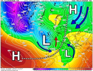 Een lagedrukgebied met kerndruk rond 975 hPa schuift vandaag via de Atlantische Oceaan naar het zuiden van Ierland. Voorlopig blijft deze depressie nog wel ver genoeg verwijderd om het weer in de Alpen niet te bepalen. Resultaat? Nog steeds droog en zonnig weer. Komende dagen trekt de lagedrukzone gestaag verder naar het oosten en schakelt het weer in de Alpen over op een meer wisselvallige en ook koudere variant. Ook in de Benelux zal de zuidelijke koers van de lagedrukgebieden opnieuw een koudere weerfase inleiden.
