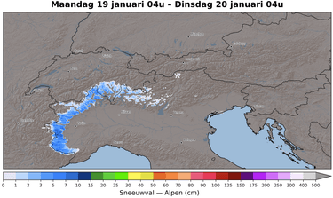 Vanaf woensdag komen lagedrukgebieden postvatten boven het westen van Frankrijk. Op woensdag verandert er nog weinig, met veelal Kaiserwetter in de Alpen. De zuidkant houdt het nog steeds iets kouder door de aanwezigheid van een zeer zwakke sudföhn. Donderdag betrekt het in de Franse Alpen en kan hier een beetje sneeuw vallen boven ca. 1000 m. Elders blijft droog met zon en hoge/middelhoge wolkensluiers. Vrijdag wordt een dag om in de gaten te houden met mogelijk (veel) sneeuw voor de hele zuidkant en de Westelijke Alpen. De aanwezige lucht is vrij koel waardoor de sneeuwgrens onder 1000 m ligt. In Oostenrijk en het grootste deel van Zwitserland blijft het droog met ruimte voor de zon. Zaterdag en ook zondag blijft het wisselvallig met overal sneeuwkansen. Het ziet er dus naar uit dat de Alpen een nieuwe opfrisser kunnen gaan krijgen.
